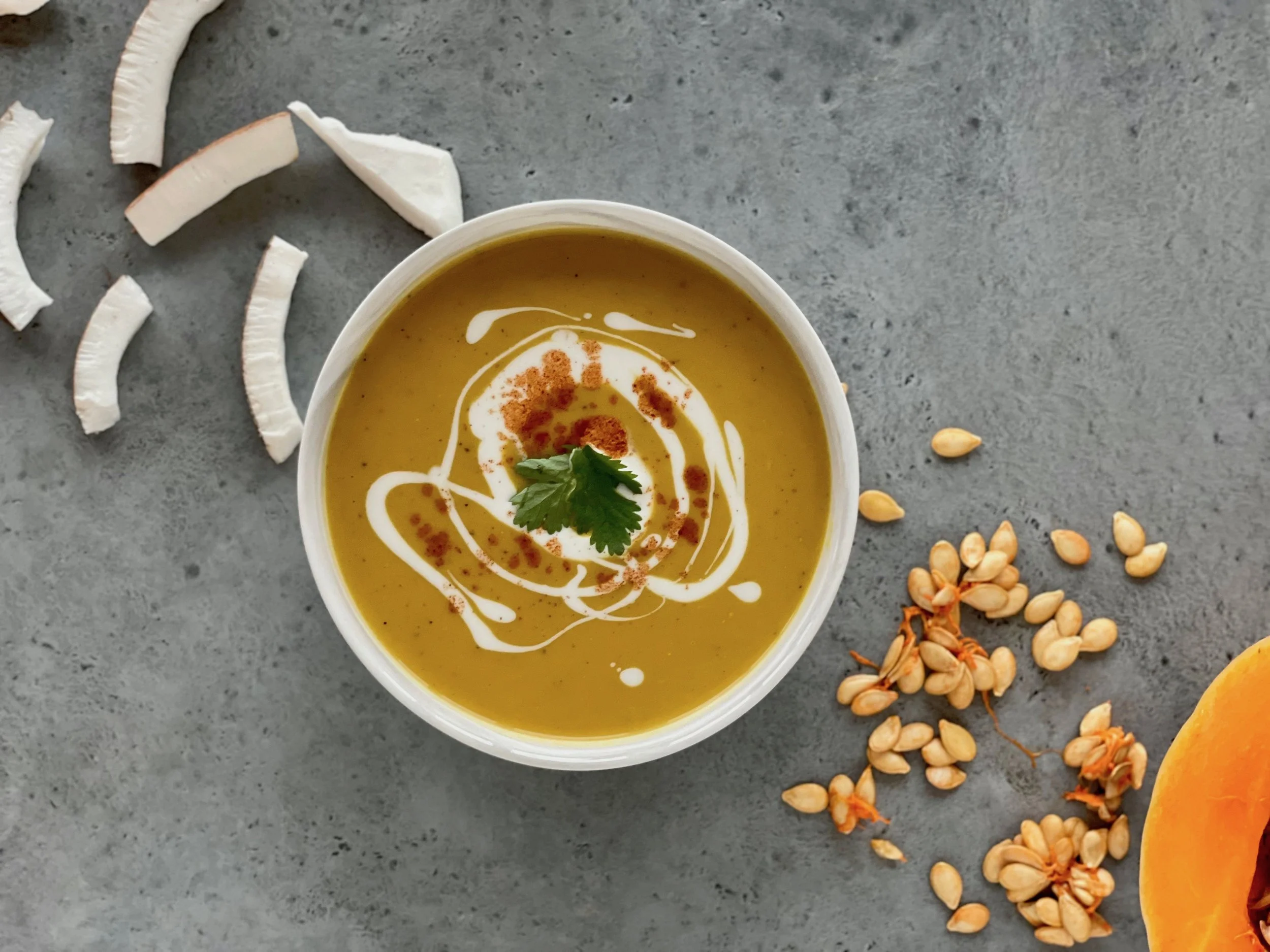 This recipe is a slight tweak on butternut squash soup, but equally delicious and warming as you would expect. I've used a little less butternut squash, but we are flavoring it up with garam masala, a magical mixture of spices, and making it extra creamy by adding coconut milk. Coconut milk, a saturated fat, contains MCTs oil, which is excellent for helping keep you full longer and converting to energy faster.